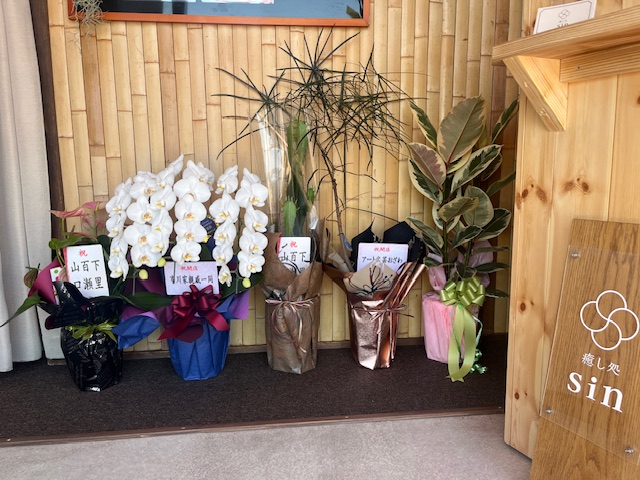 昨日のオープンに合わせて、お祝いのお花や観葉植物をいただきました。